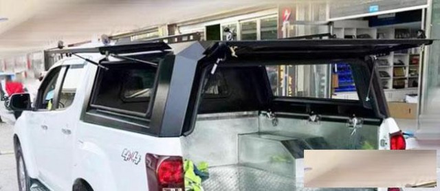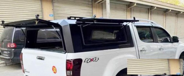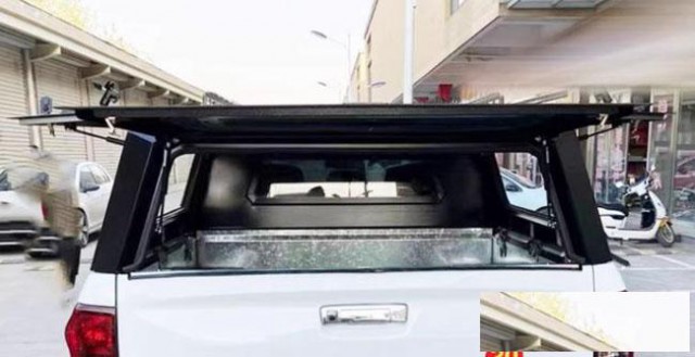 16-23款五十铃dmax皮卡车三开门后箱高盖改装件,全金属材质,遮阳挡雨,结实耐用。全焊接设计,不用担心顶部漏水。出厂带高位刹车灯,提高行车安全。液压升降窗盖,开合灵敏。免打孔安装,卡扣固定,带锁设计,安全放心。
